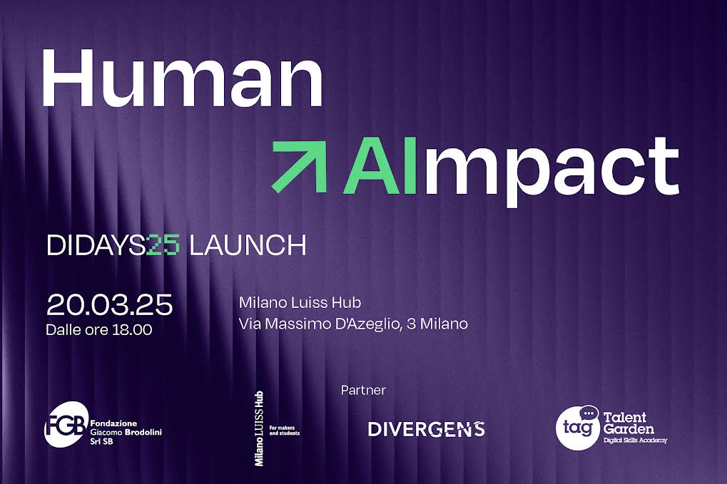 Il 20 marzo si terrà Human AImpact – Didays25 Launch, un evento esclusivo che anticipa la manifestazione di ottobre: i Digital Innovation Days 2025, in programma l’8 e il 9 ottobre 2025 a Milano. L’evento di lancio, che avrà luogo presso il Milano Luiss Hub for Makers and Students, in Via Massimo D’Azeglio 3, sarà un’occasione per scoprire come l’intelligenza artificiale e il digitale possano amplificare il potenziale umano e trasformarsi in un motore di cambiamento concreto. Durante la serata, esperti del settore, innovatori e professionisti si confronteranno su come la tecnologia possa essere un catalizzatore di progresso, senza perdere di vista il valore dell’ingegno e della creatività umana.